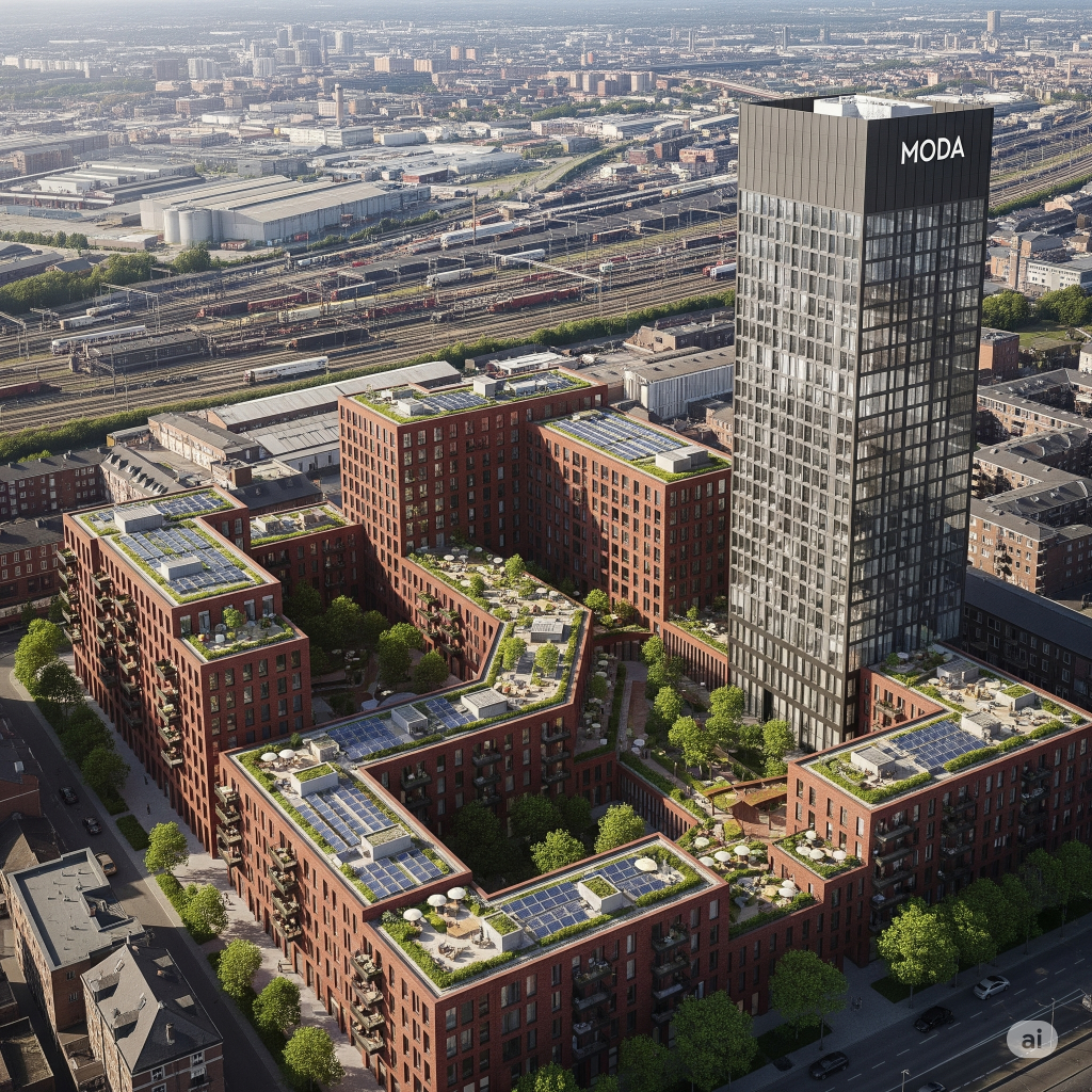 Moda’s sister company, Caddick, has commenced enabling works on the first phase, which will deliver 605 homes across four residential blocks. Completion is scheduled for 2028. A future phase will take the total number of homes to 995.