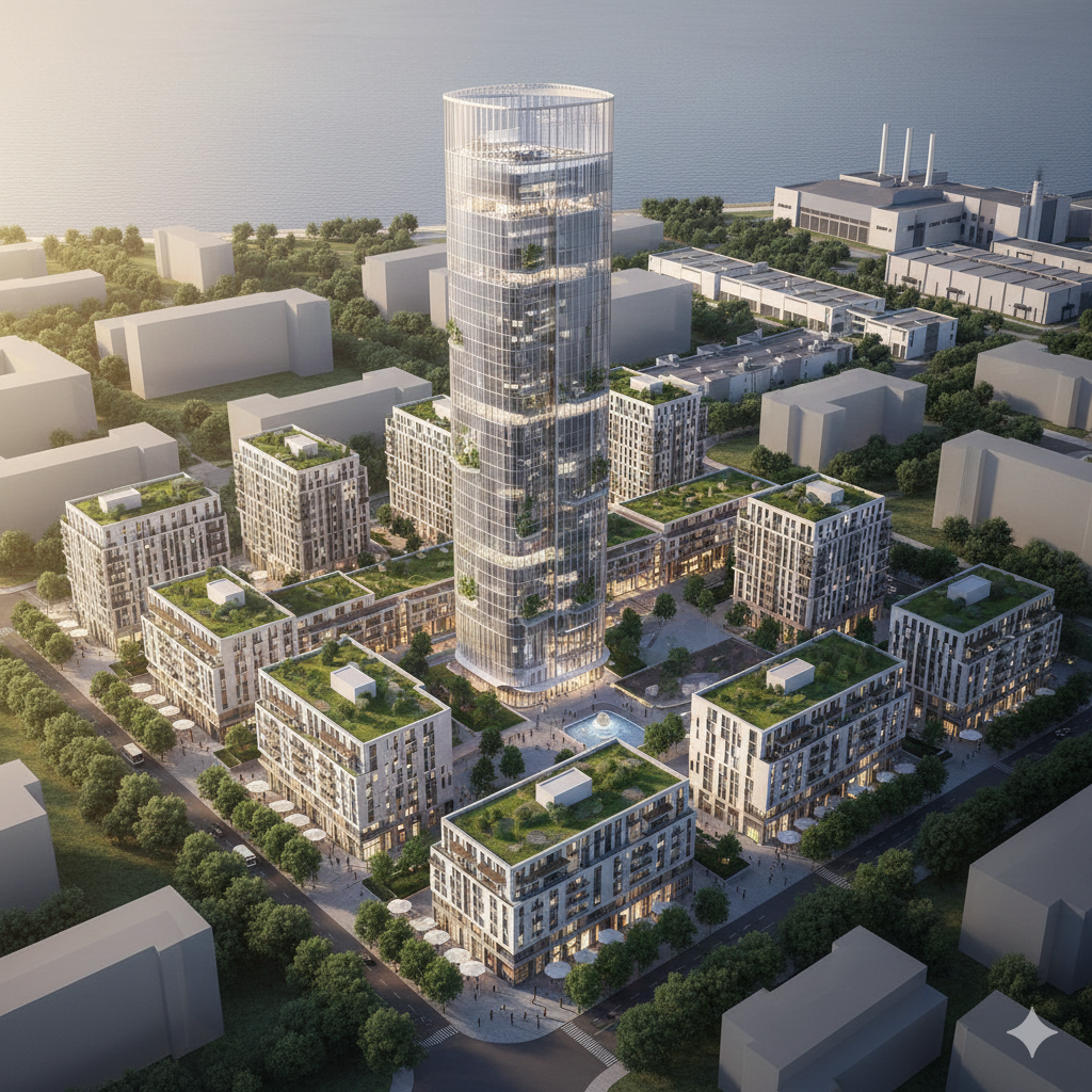 Sustainability is a key focus of the proposals. The area already benefits from a district energy network powered by the UK’s largest urban solar farm and mine water heat, as well as a recently completed 1,000-space car park designed to support large-scale electric vehicle charging.